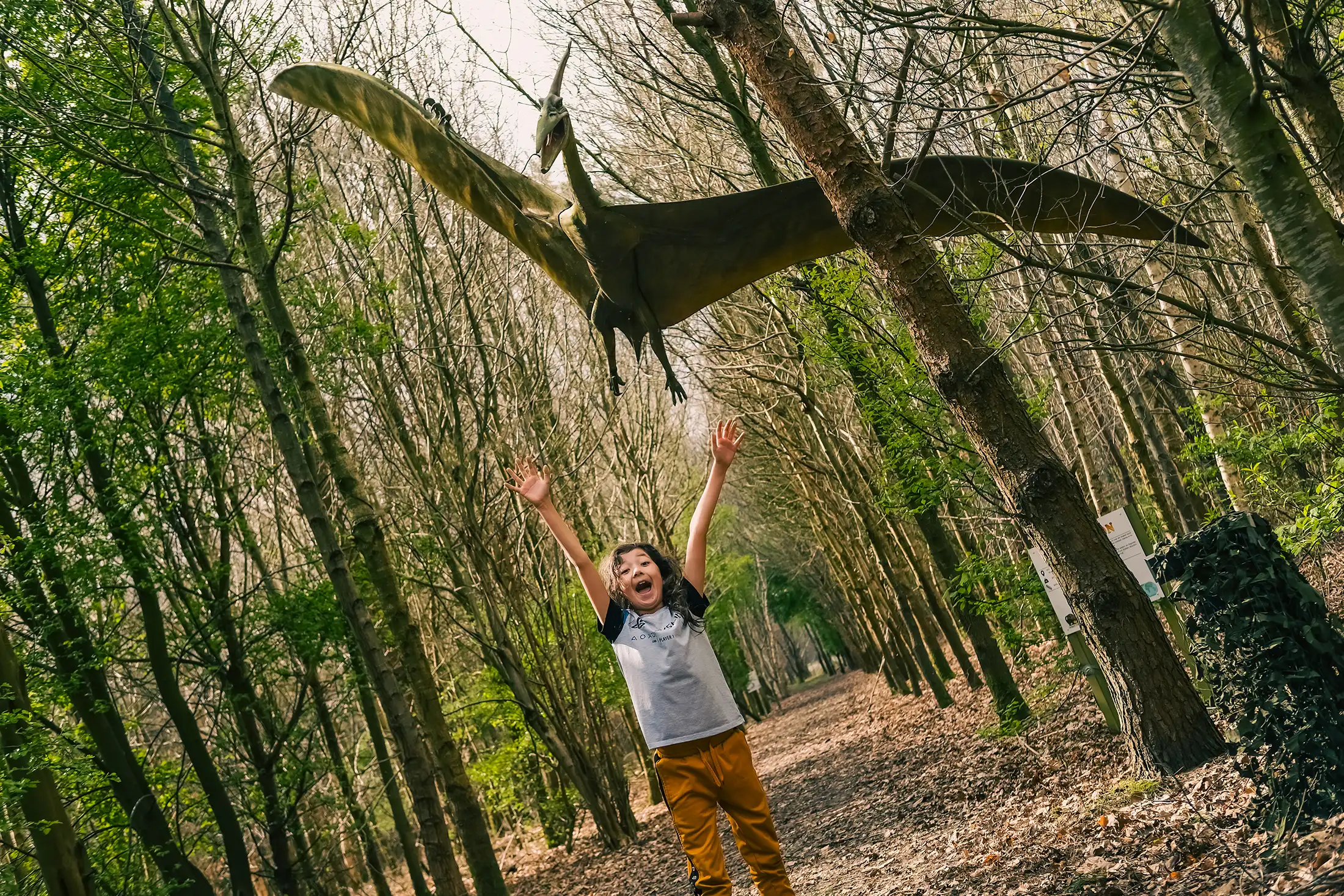 Ontdek het avontuurlijke Krijtwoud met brullende en bewegende dino's. Start met de uitdagende survivalrun voor grotere kinderen of de opblaasbare survivalrun voor kleine kinderen. Kom en laat je verrassen in ons park!