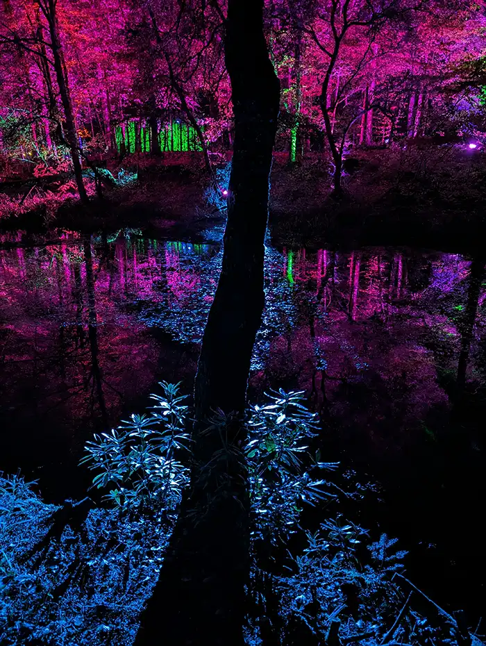 Lassen Sie sich von wunderschön beleuchteten Bäumen, wunderschönen Kunstkreationen und den beeindruckenden Dinosauriern in einem märchenhaften Licht verzaubern. Es bietet ein bezauberndes Erlebnis, das Jung und Alt nicht vergessen werden.